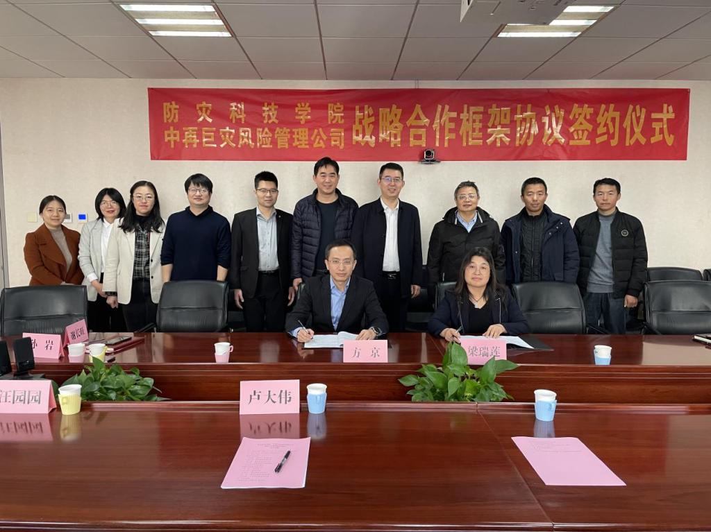 12月1日,中再巨灾风险管理股份有限公司总经理方京、副总经理卢大伟一行到我校经济管理学院调研。副校长、总会计师梁瑞莲出席会议,与中再巨灾风险管理股份有限公司签订战略合作框架协议。经济管理学院部分教师参加了签约仪式。