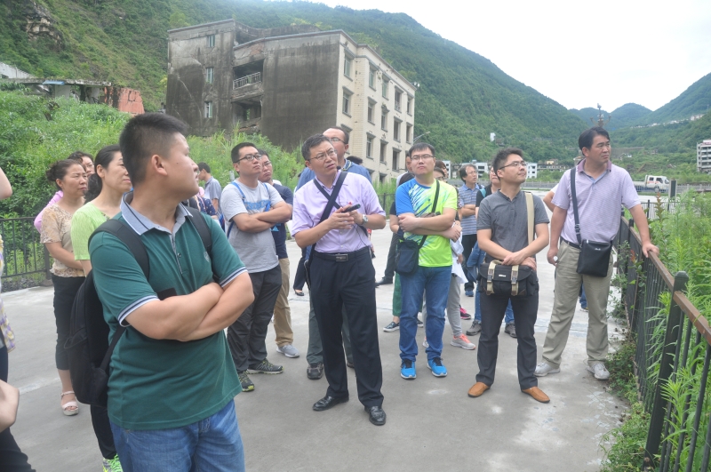 到北川地震遗址进行实地考察时,学院院长薄景山教授和防灾工程系主任郭迅教授为大家进行现场教学。薄景山为大家详细讲述了汶川地震发生的背景、特征、表现、破坏性等,分析指出“建筑选址和建筑结构”两方面在应对地震灾害时的重要性。郭迅结合遗址现场建筑物的损害情况,分析了房屋倒塌的原因、如何在建筑设计中加强抗震性设计,并总结了其中的规律。沿途大家还参观了汉旺和映秀地震遗址。