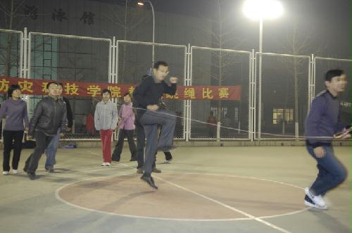 11月18日下午,由院工会主办的教职工集体跳绳比赛在我院体育场举行。由全院十五个分工会分别组成的十五个代表队、共二百多名教职工参加了比赛。