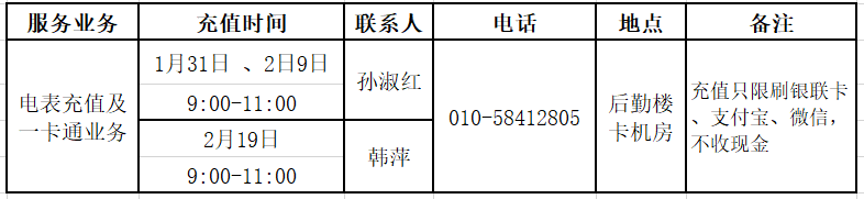 (一)家属区预付费电表充值预约及一卡通业务办理。