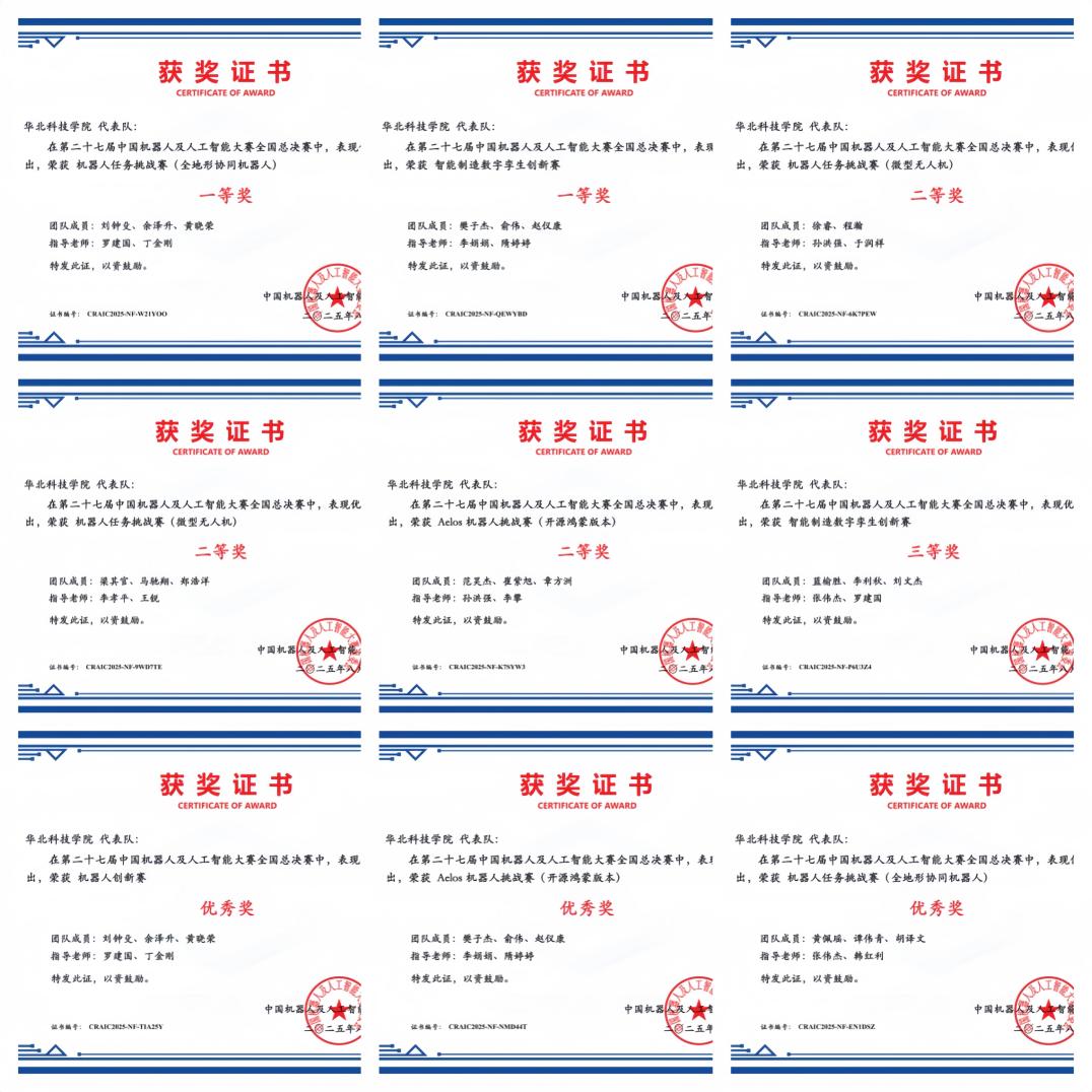 由中国机器人及人工智能大赛组委会主办的第二十七届中国机器人及人工智能大赛全国总决赛于8月6日落下帷幕。我校应急装备学院选派师生参加机器人创新赛、智能制造数字孪生创新赛、Aelos机器人挑战赛(开源鸿蒙版本)、全地形协同机器人任务挑战赛和微型无人机任务挑战赛五个赛项,经过长达5个月的精心准备和实践,通过校赛、省赛、国赛预赛和国赛总决赛层层选拔,最终在比赛中取得了可喜可贺的优异成绩,省赛阶段荣获一等奖6项、二等奖3项和三等奖3项;全国总决赛荣获一等奖2项、二等奖3项、三等奖1项和优秀奖3项。