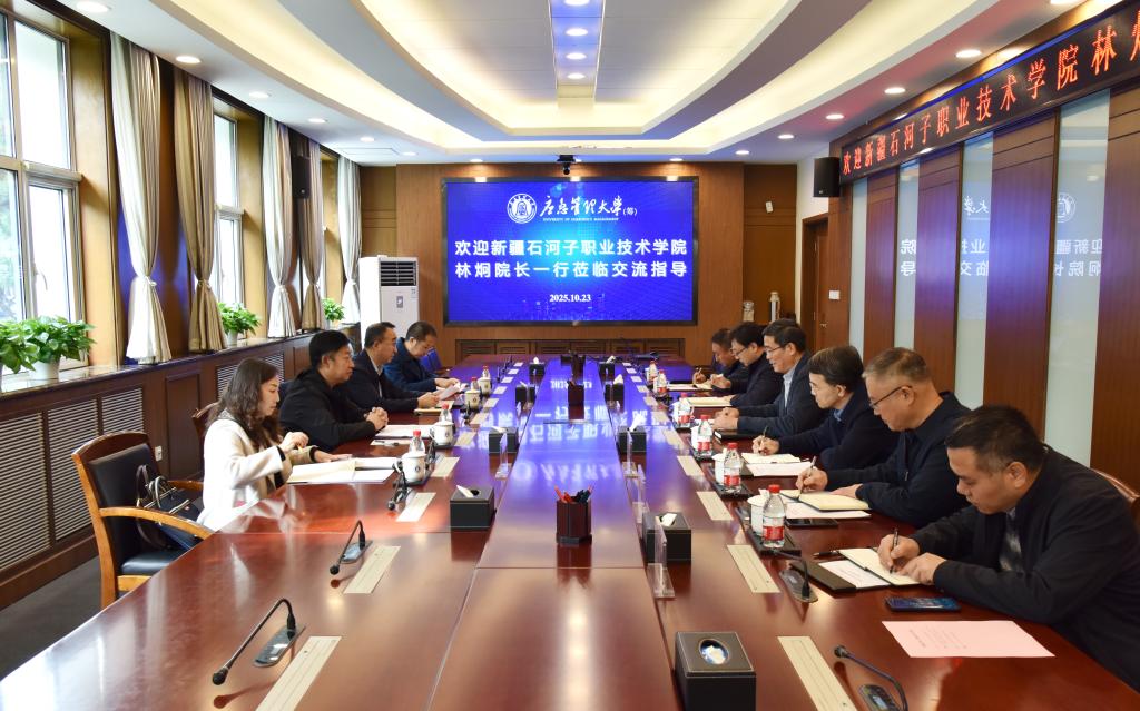 10月23日上午,新疆石河子职业技术学院党委副书记、院长林炯率调研组一行4人莅临我校,围绕深化校际合作、应急和安全类专业申报、教育培训协同等议题开展调研交流。学校联合党委常委、副校长邹光华会见调研组,双方进行深入会谈。